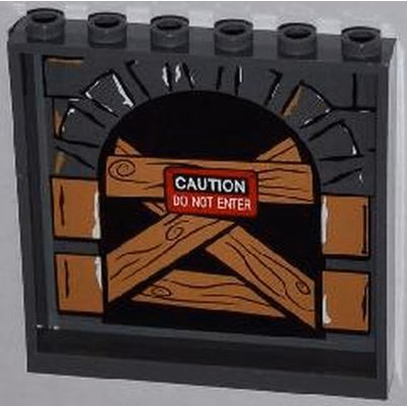 Деталь Lego 59349pb063 Panel 1 x 6 x 5 with Stone Arch, Wooden Boards and ‘CAUTION DO NOT ENTER’ Pattern on Inside (Sticker) – Set 79103