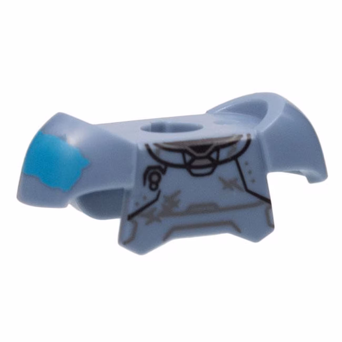 Деталь Lego 78643pb05 Minifigure Armor Breastplate with Shoulder Pads and 2 Back Studs with Black Panels Lines, Dark Bluish Gray Scuffs, and Medium Azure Splotch on Right Pattern