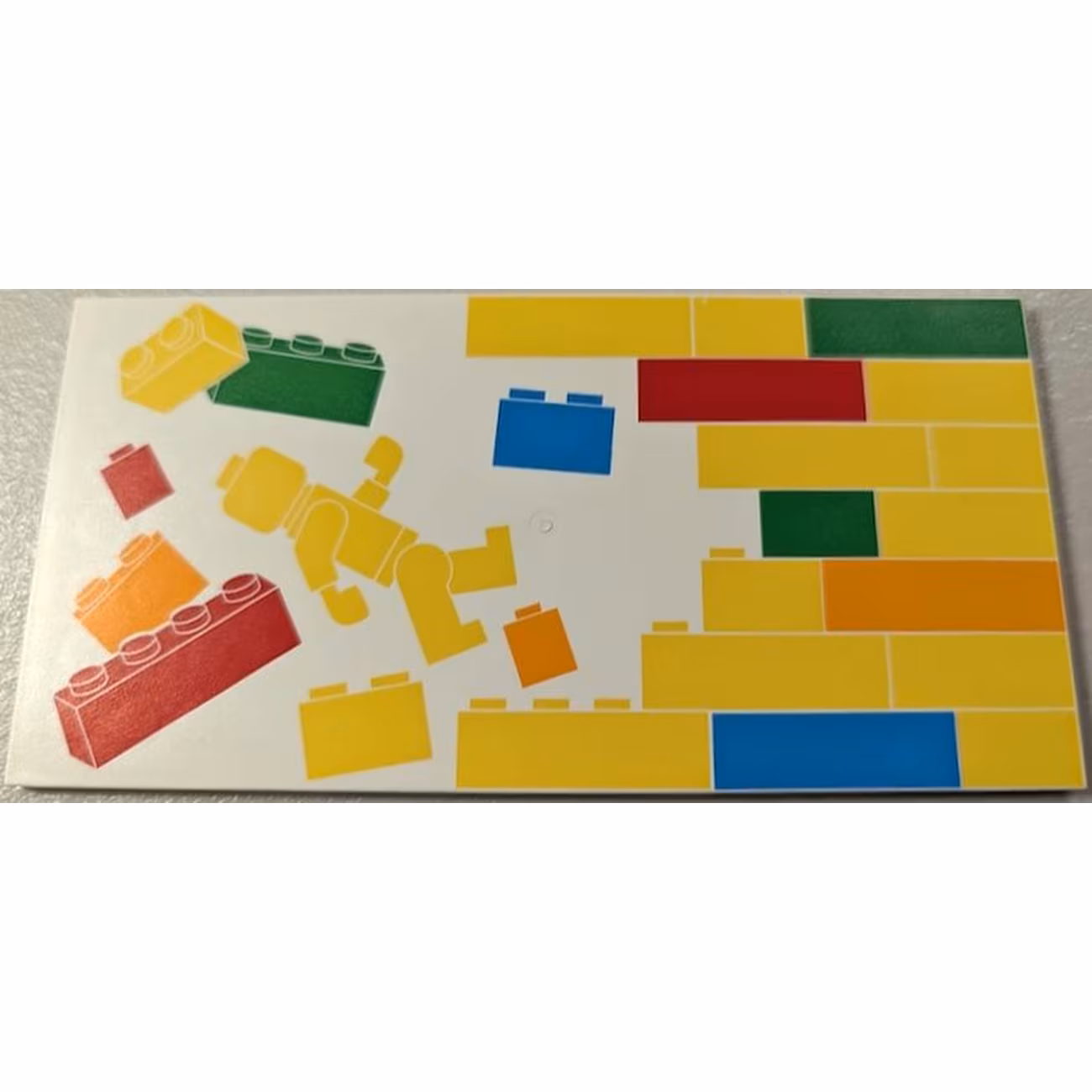 Деталь Lego 90498pb48R Tile 8 x 16 with Bottom Tubes, Textured Surface with Yellow, Orange, Dark Azure, Red and Bright Green Bricks, Brick Wall and Minifigure Pattern Model Right Side