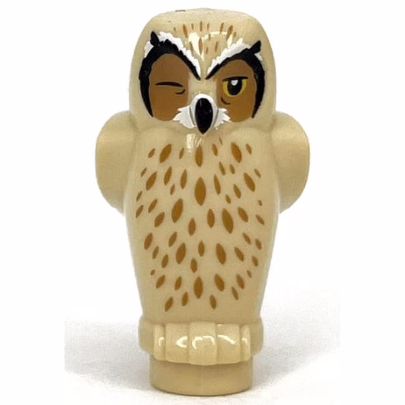 Деталь Lego 92084pb05 Owl, Angular Features with Black Beak, Yellow Eyes with One Closed, and Medium Nougat Chest Feathers and Forehead Spots Pattern