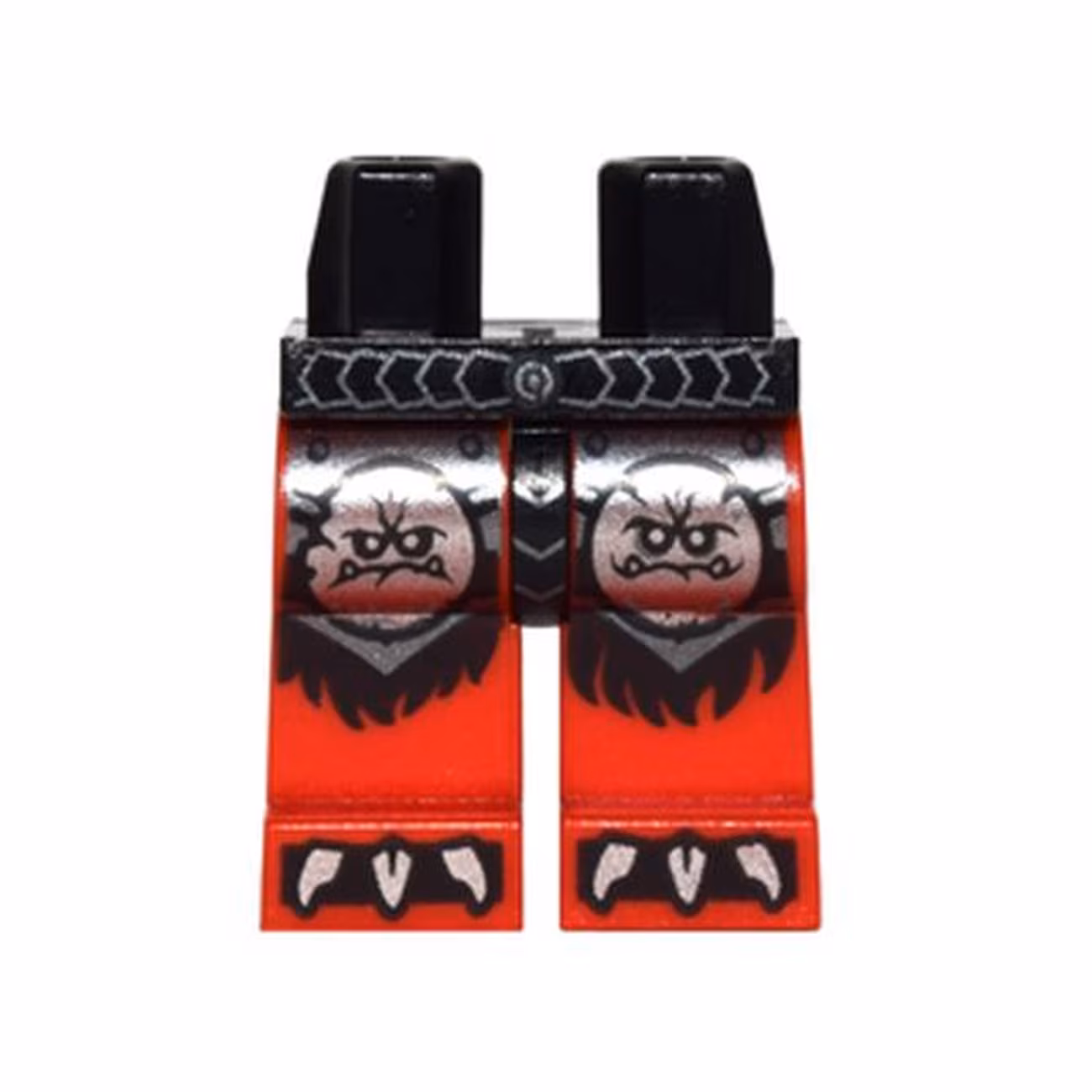 Деталь Lego 970c05pb16 Hips and Red Legs with Silver Belt, Round Monster Face Emblems and Claws and Black Fur Pattern