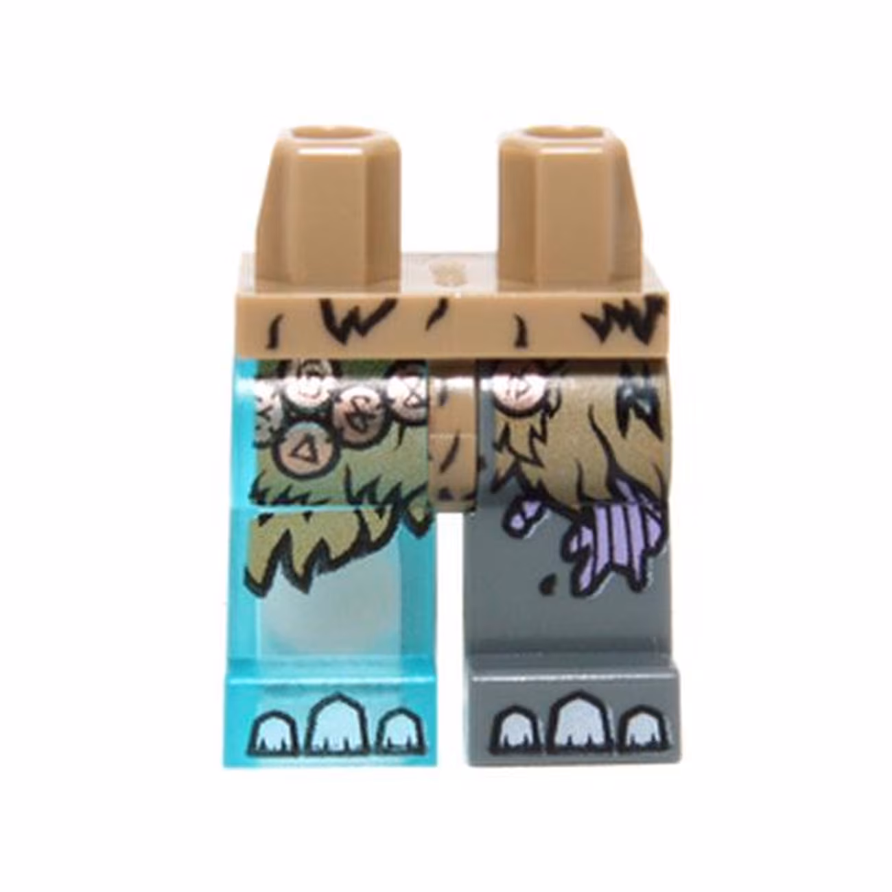 Деталь Lego 970d22pb02 Hips and 1 Dark Bluish Gray Left Leg, 1 Trans-Light Blue Right Leg with Fur, Copper Pendants, Medium Lavender Sinew Patches and White Toenails Pattern