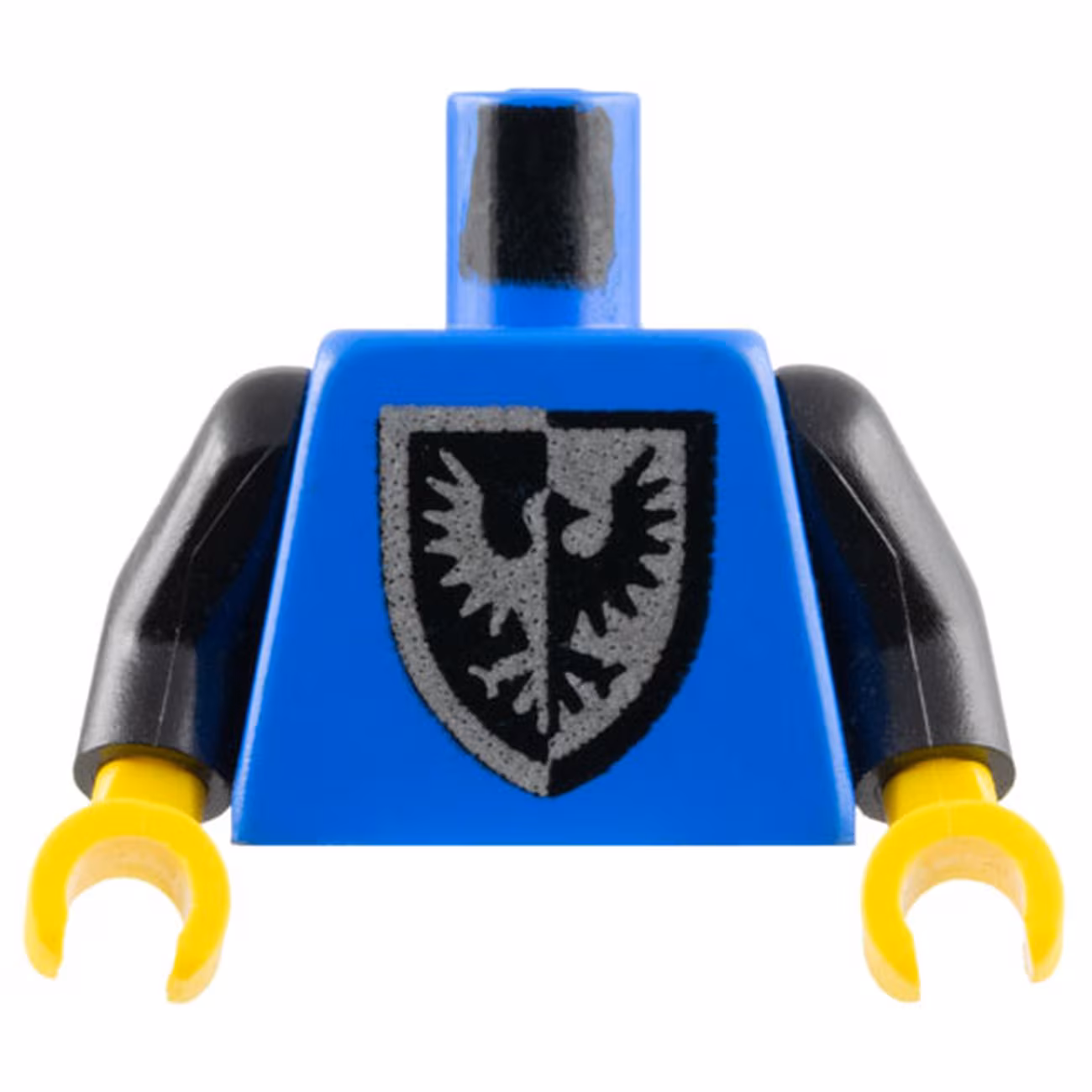 Деталь Lego 973p43c01 Torso Castle Black Falcon with Shield Bottom Round Pattern / Black Arms / Yellow Hands