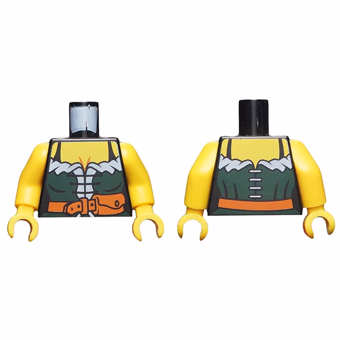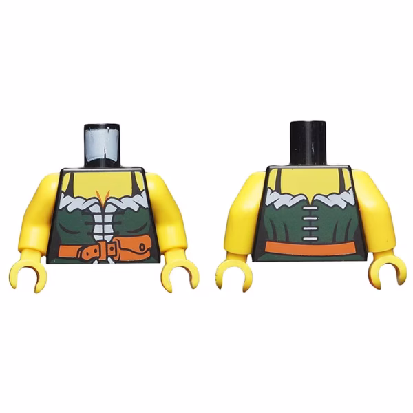 Деталь Lego 973pb0528c01 Torso Female Pirate Dark Green Corset with White Trim, Dark Orange Belt with Pouch, Yellow Chest Pattern / Yellow Arms / Yellow Hands