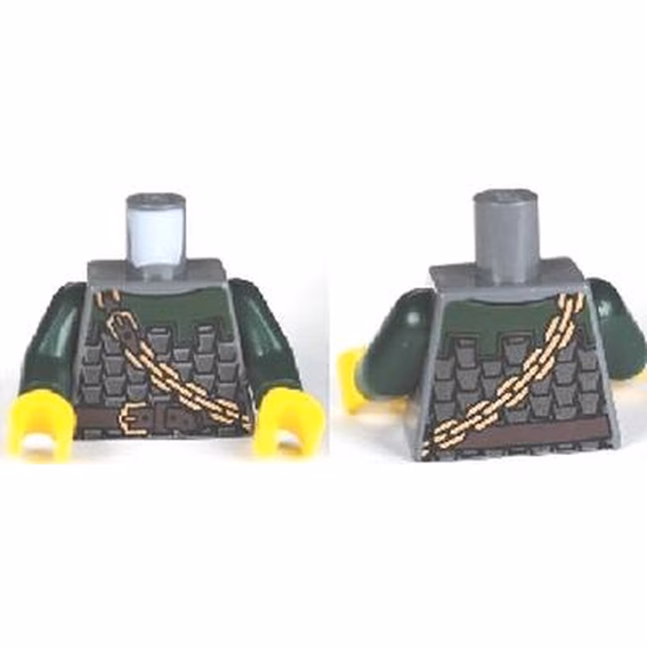 Деталь Lego 973pb0691c01 Torso Castle Kingdoms Scale Mail, Dark Green Collar, Chain and Belt Front and Back Pattern / Dark Green Arms / Yellow Hands