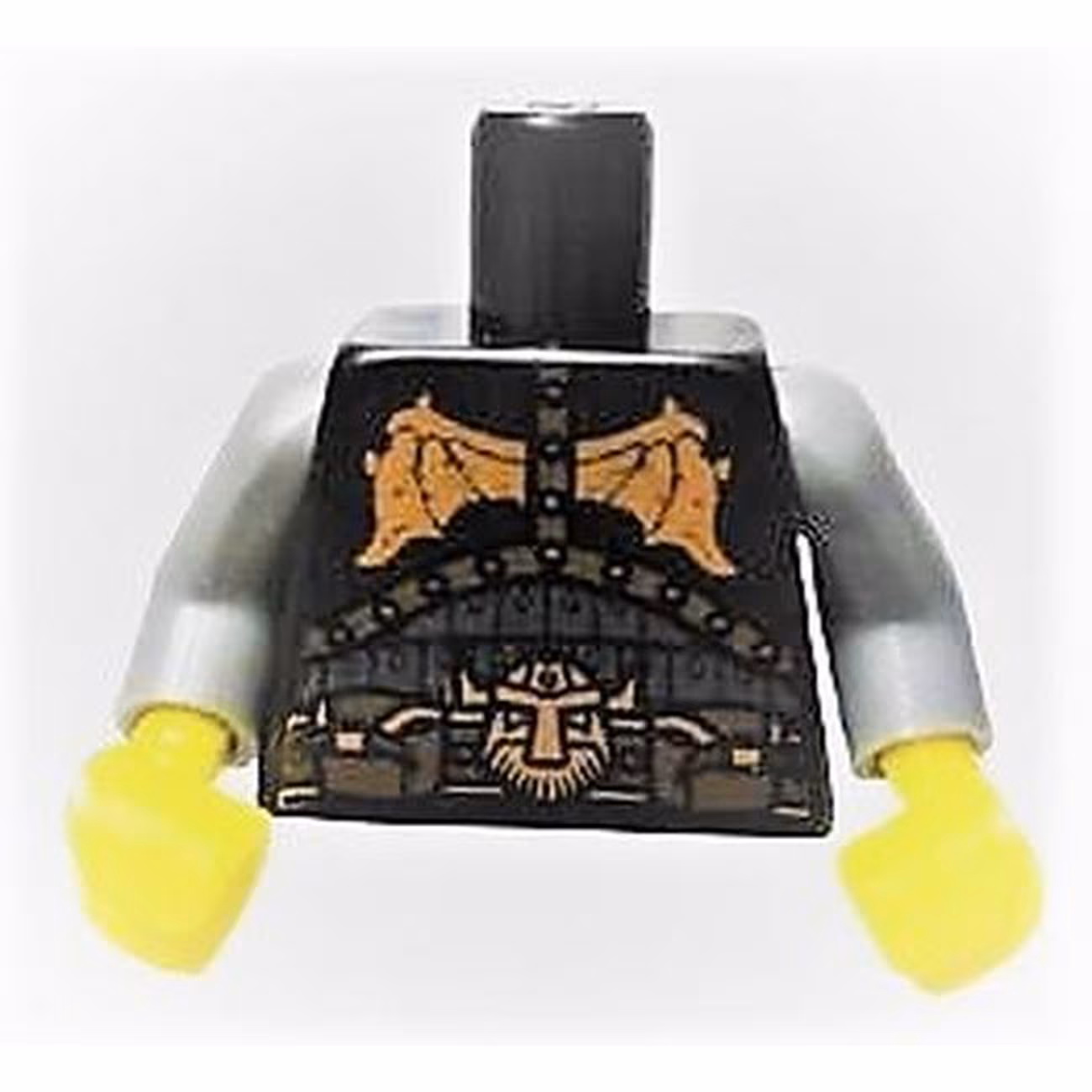 Деталь Lego 973pb0937c01 Torso Armor with Copper Dragon Wings, Dwarf Head Buckle and Pouches Pattern / Dark Bluish Gray Arms / Yellow Hands