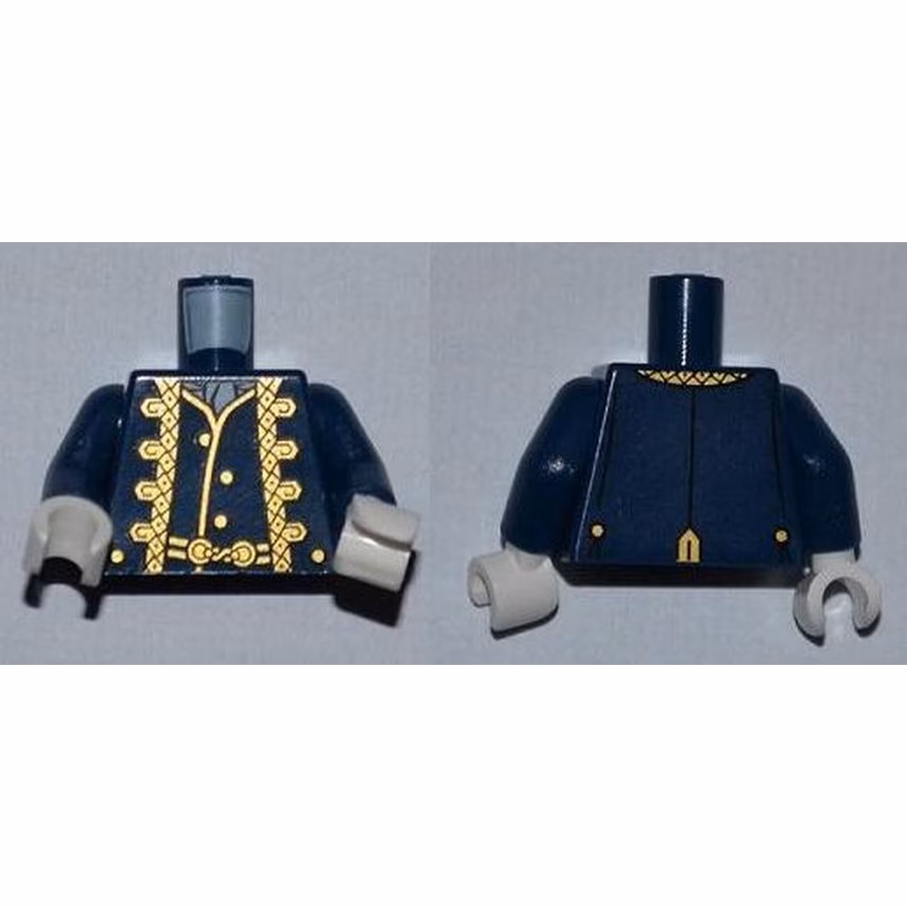 Деталь Lego 973pb0945c01 Torso PotC Uniform Jacket over Vest with Gold Trim Pattern / Dark Blue Arms / White Hands