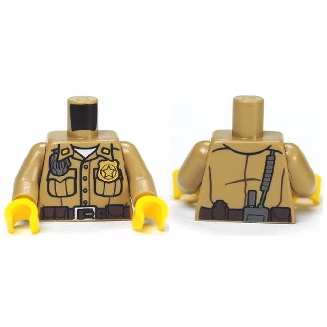 Деталь Lego 973pb0985c01 Torso Shirt Button Down with Pockets, Radio, Badge and Dark Brown Belt Pattern / Dark Tan Arms / Yellow Hands