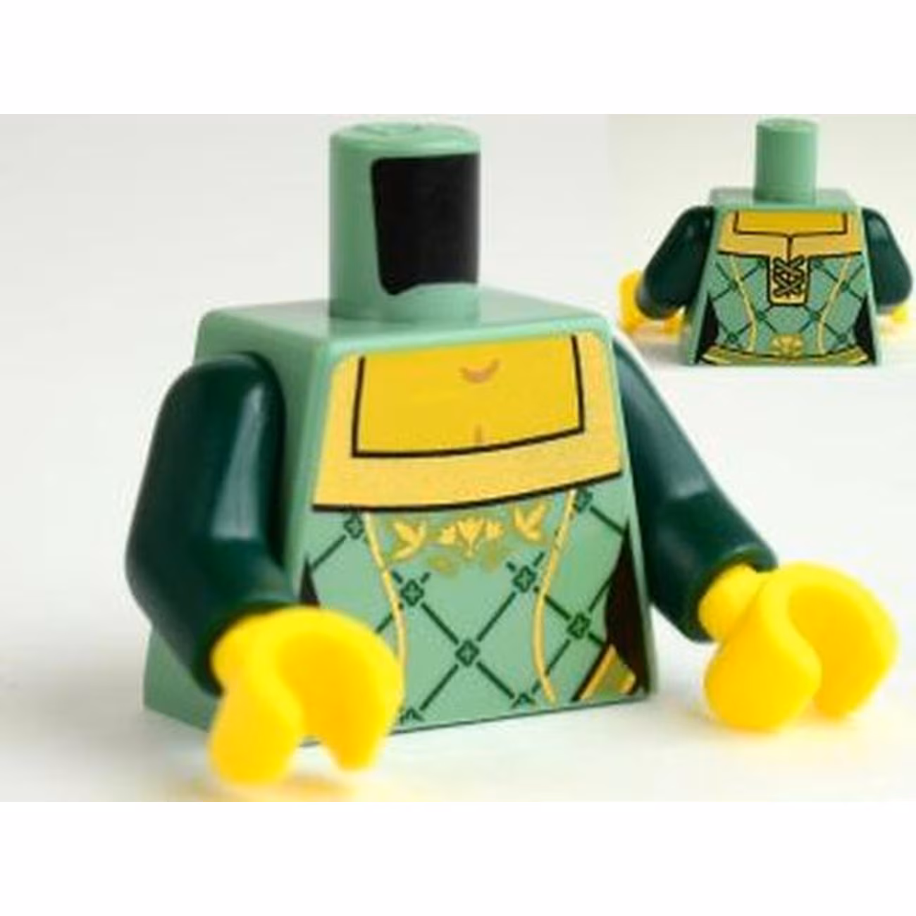 Деталь Lego 973pb1032c01 Torso Castle Kingdoms Female Corset with Gold Trimmed Front and Rectangular Neckline Pattern / Dark Green Arms / Yellow Hands