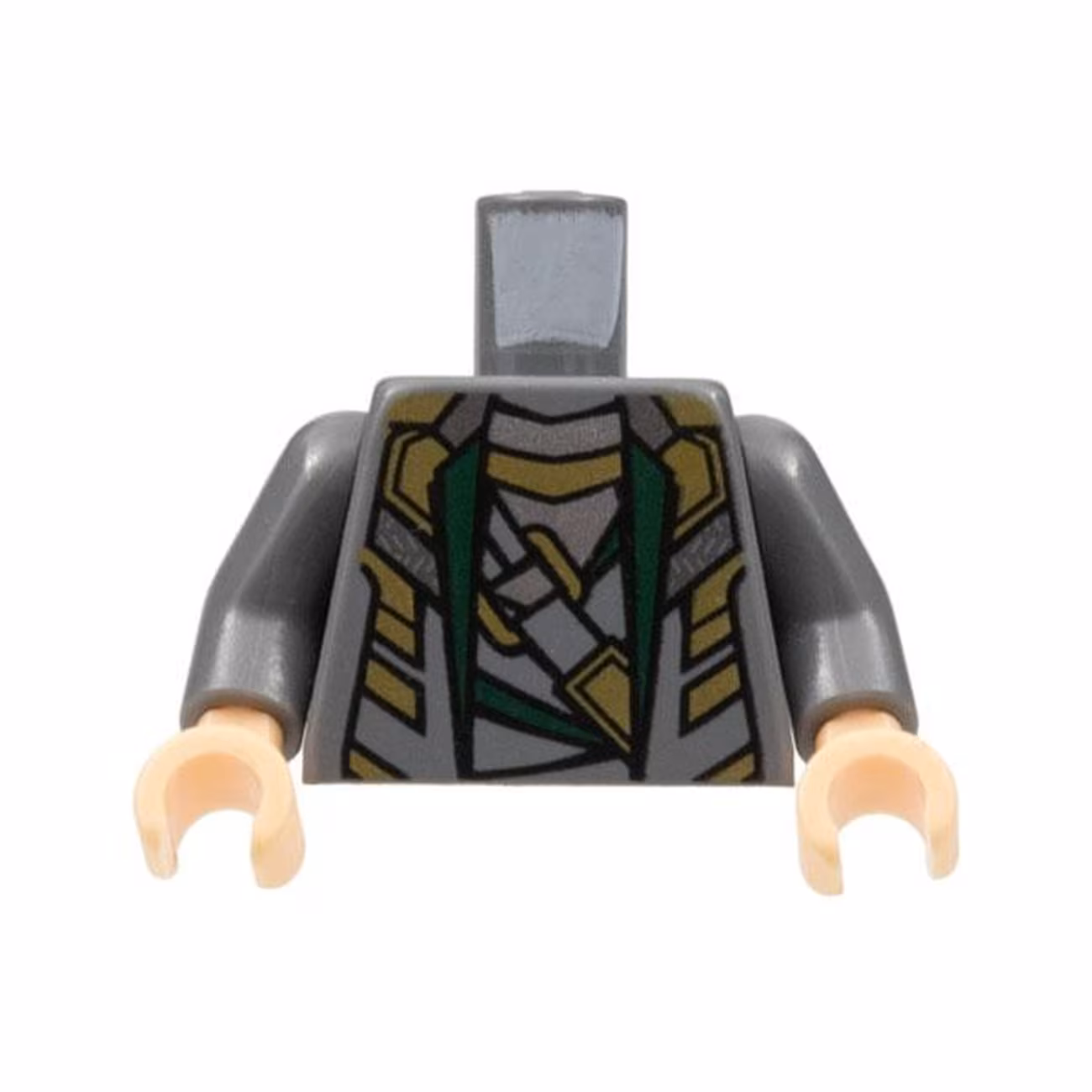 Деталь Lego 973pb1103c01 Torso Suit with Dark Green Lapels, Silver and Gold Highlights Pattern / Dark Bluish Gray Arms / Light Nougat Hands