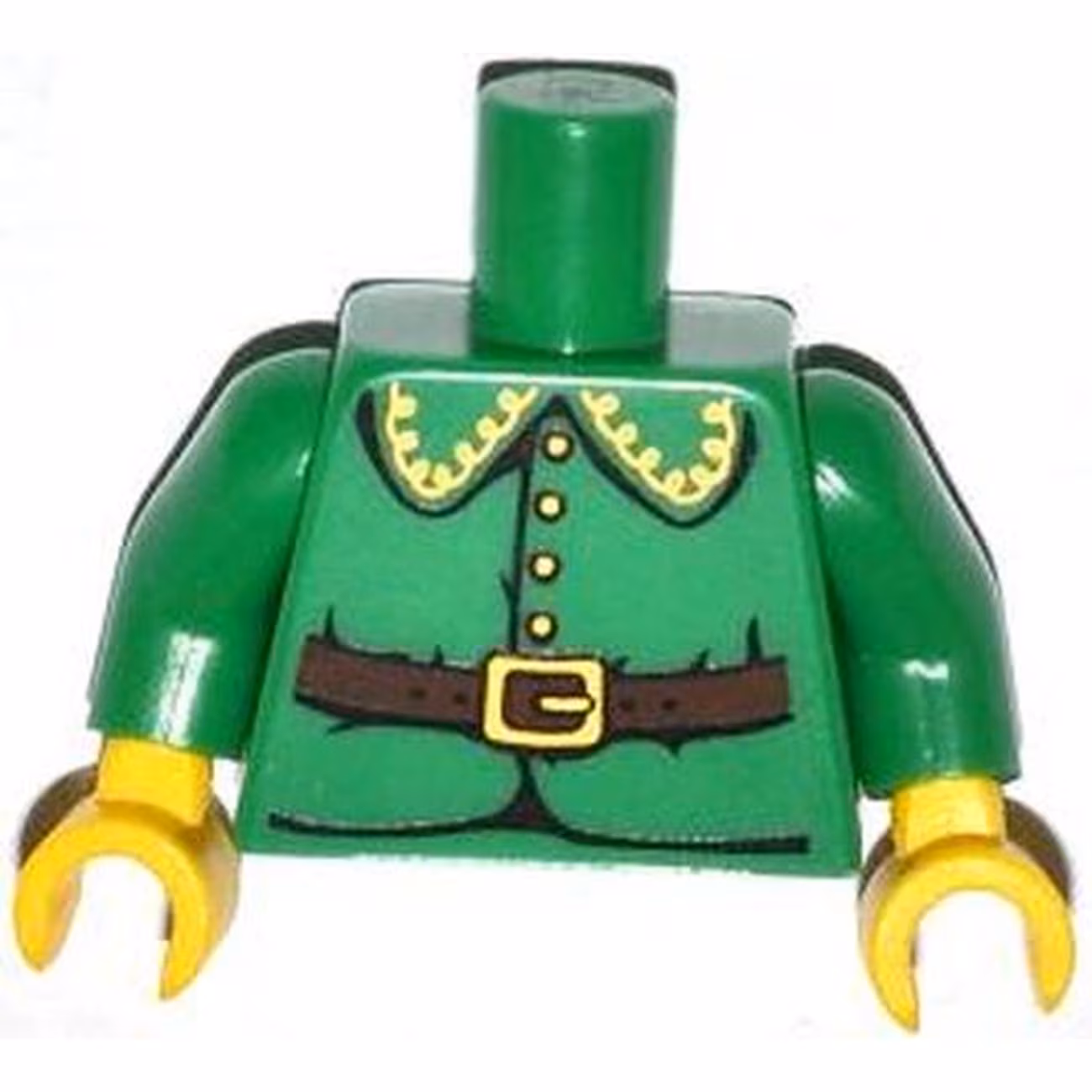 Деталь Lego 973pb1496c01 Torso Rounded Collar, 4 Gold Buttons and Brown Belt with Gold Buckle Pattern / Green Arms / Yellow Hands