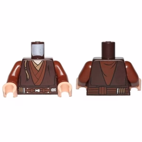 Деталь Lego 973pb1534c01 Torso SW Layered Shirt, Dark Tan Undershirt, Reddish Brown Belt and Padawan Braid Pattern / Reddish Brown Arms / Light Nougat Hands