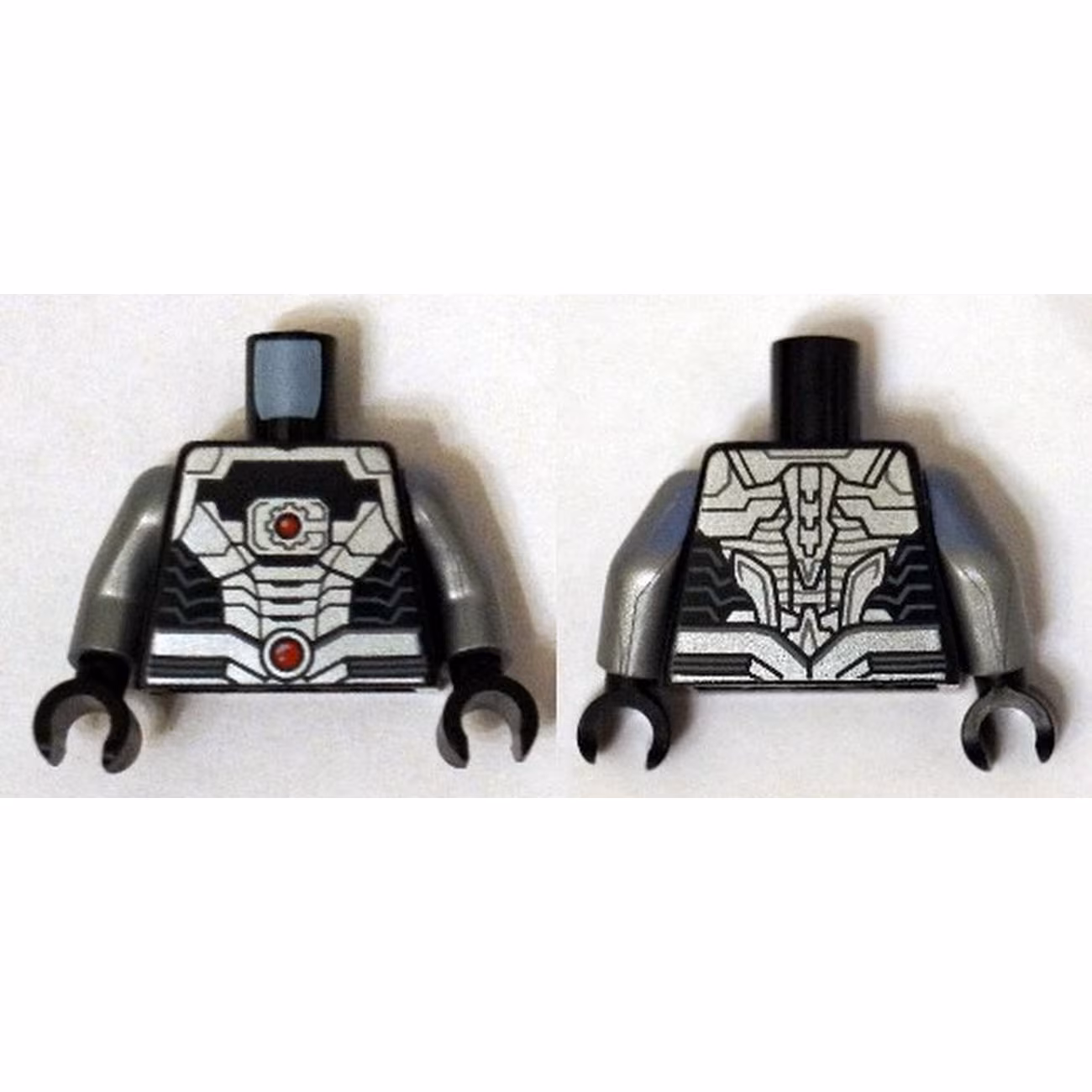 Деталь Lego 973pb1857c01 Torso Black and Silver Armor Plating with 2 Red Circles Pattern (Cyborg) / Flat Silver Arms / Black Hands