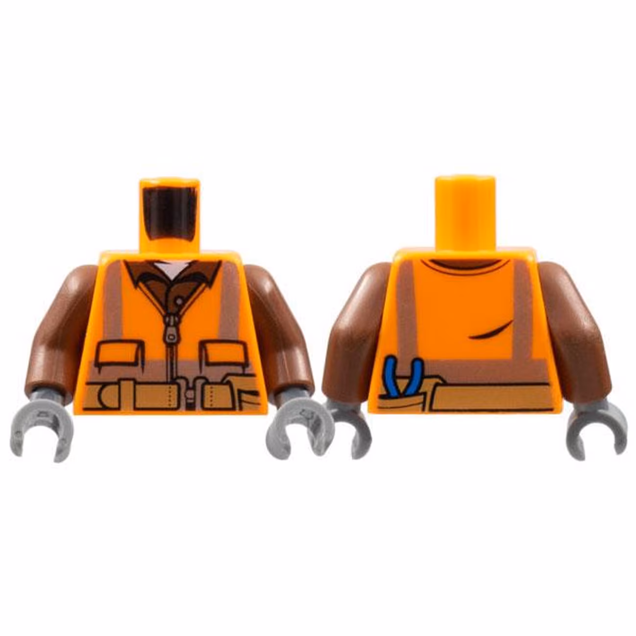 Деталь Lego 973pb1905c01 Torso Safety Vest with Reflective Stripes, Reddish Brown Shirt, Medium Nougat Belt with Pouch and Pliers Pattern / Reddish Brown Arms / Dark Bluish Gray Hands