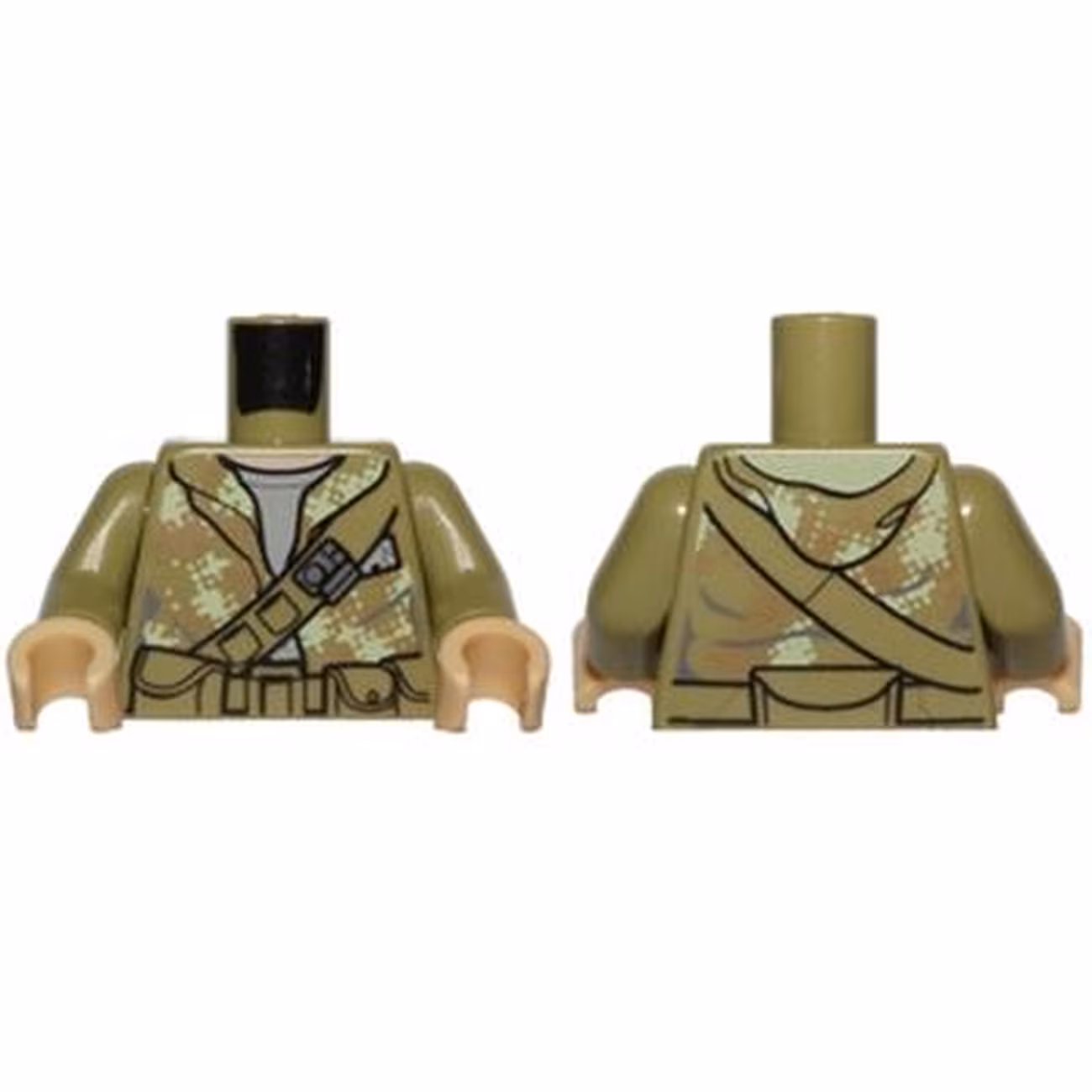 Деталь Lego 973pb2047c01 Torso Hooded Sweatshirt Camouflage over Sand Blue Shirt, Diagonal Belt and Pouches Pattern (SW Endor Rebel Trooper) / Olive Green Arms / Tan Hands