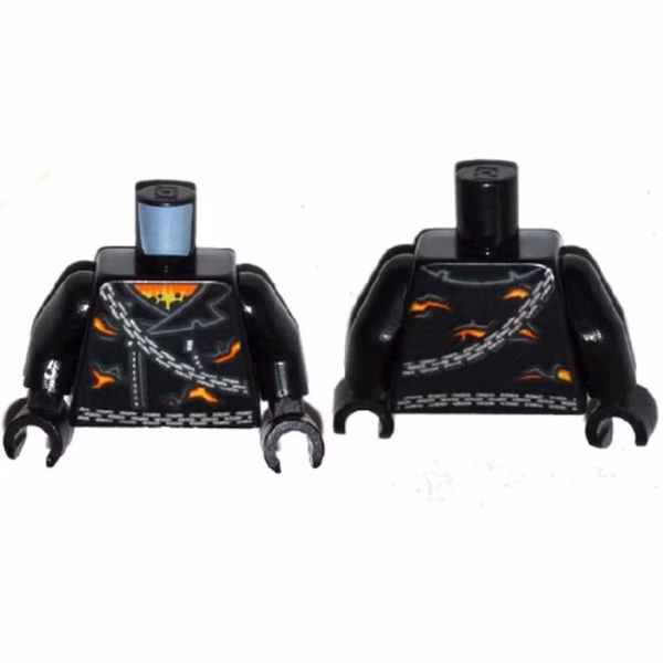 Деталь Lego 973pb2371c01 Torso Leather Jacket with Holes with Flames and Silver Chains Pattern / Black Arms / Black Hands