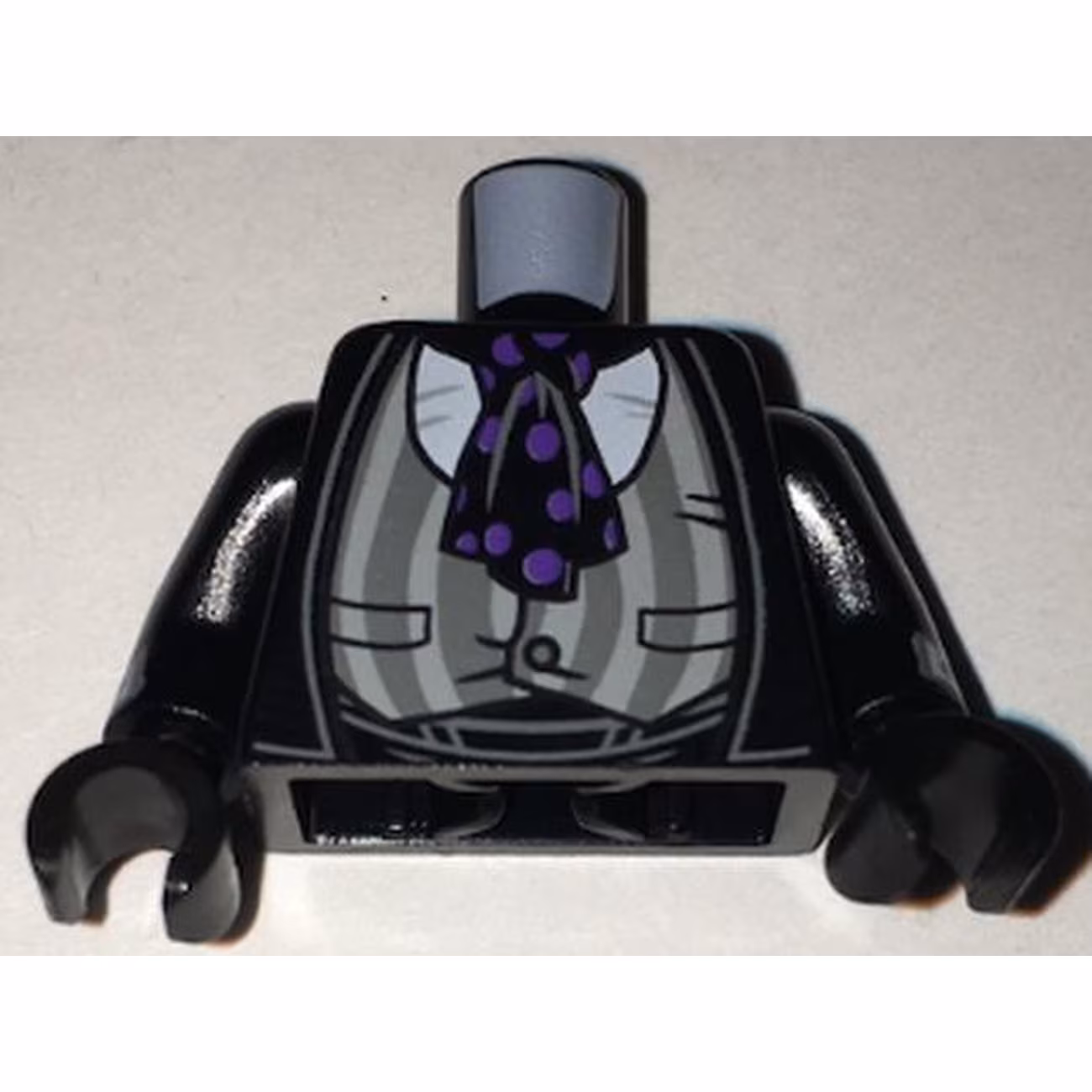 Деталь Lego 973pb2543c01 Torso Jacket with Gray Striped Stretched Vest, Black Ascot with Purple Spots Pattern / Black Arms with White Cuffs Pattern / Black Hands