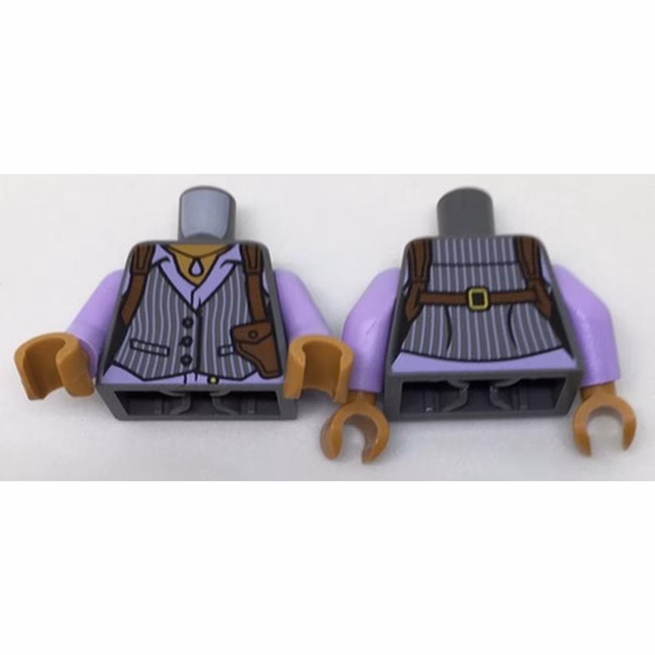 Деталь Lego 973pb2656c01 Torso Female Vest with White Pinstripes, Lavender Shirt and Reddish Brown Shoulder Holster Pattern / Lavender Arms / Medium Nougat Hands