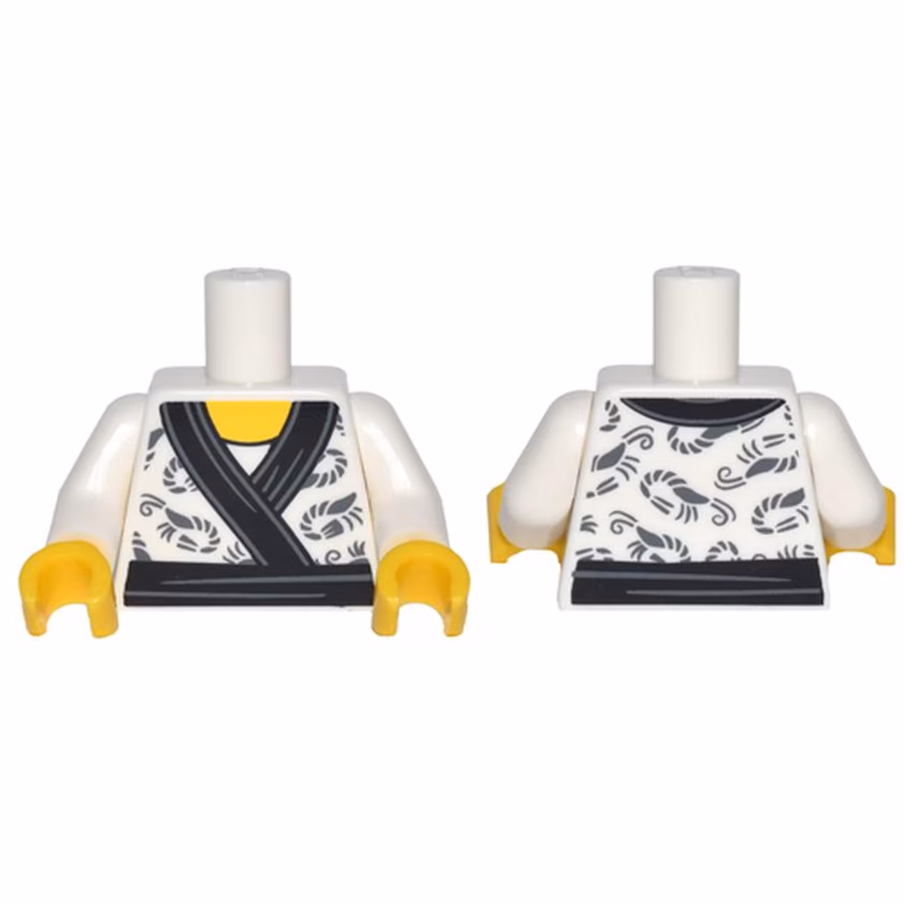 Деталь Lego 973pb2801c01 Torso Kimono with Dark Bluish Gray Shrimp and Black Sash Pattern / White Arms / Yellow Hands