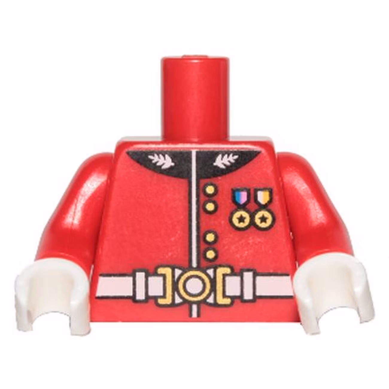 Деталь Lego 973pb3293c01 Torso Royal Guard Uniform with Gold Buttons, Medals and White Belt Pattern / Red Arms / White Hands