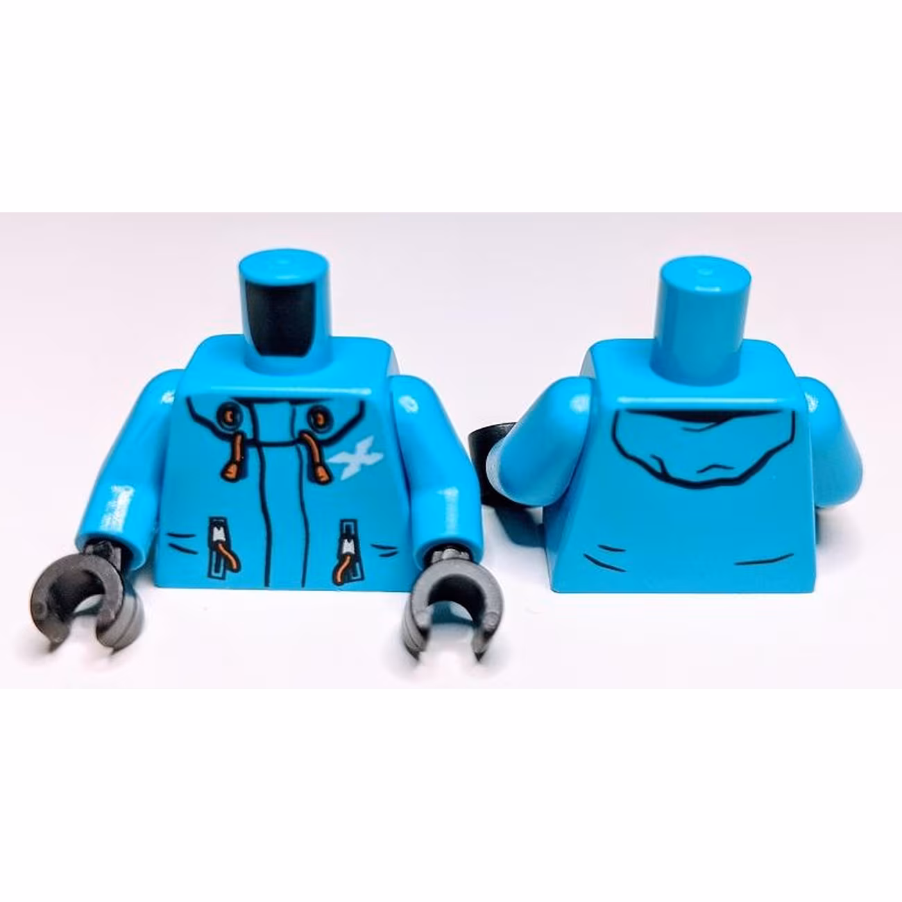 Деталь Lego 973pb3412c01 Torso Jacket with Hood, White Letter X, Orange Zippers and Drawstrings Pattern / Dark Azure Arms / Black Hands