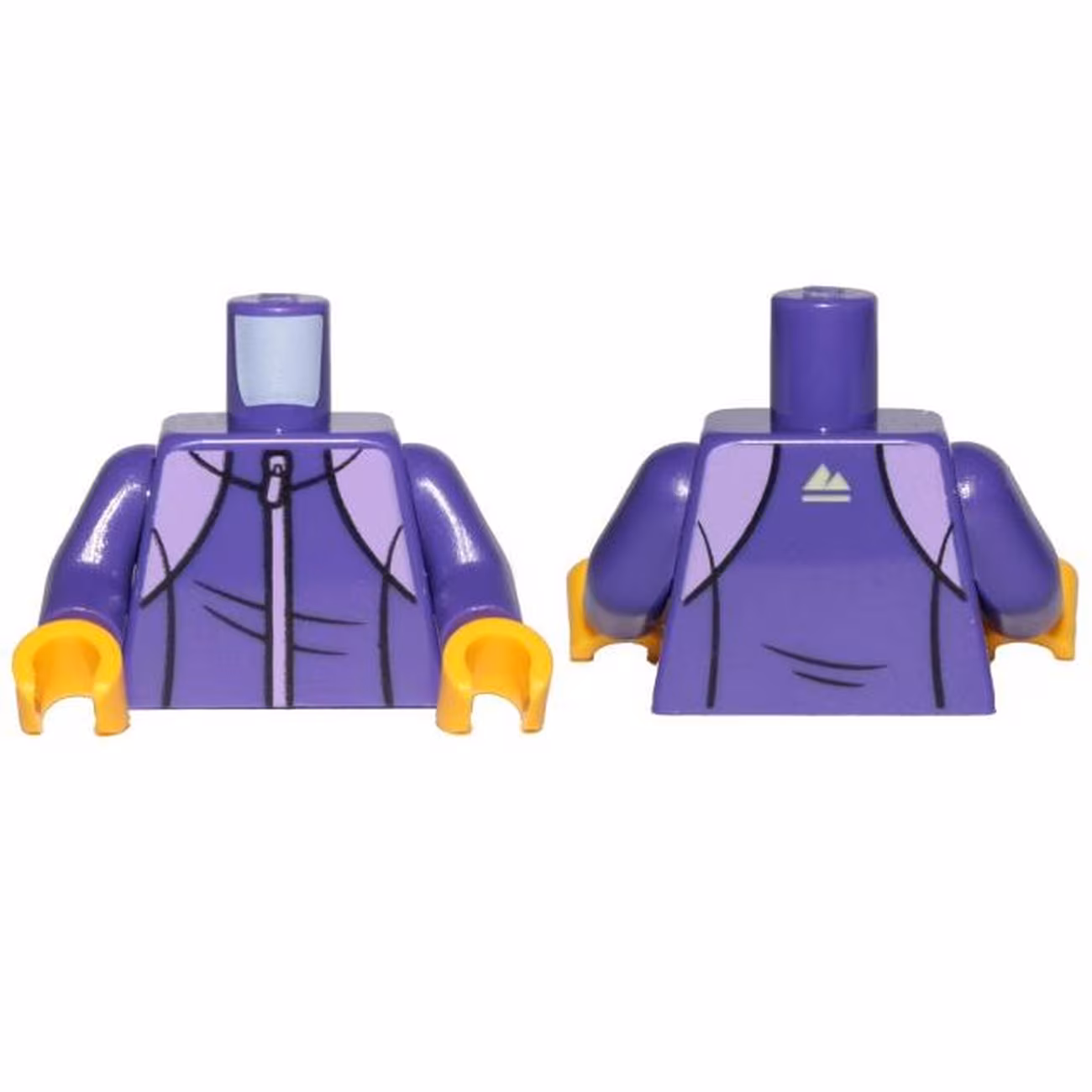 Деталь Lego 973pb3546c01 Torso Tracksuit with Medium Lavender Zipper and White Mountain Logo on Back Pattern / Dark Purple Arms / Yellow Hands