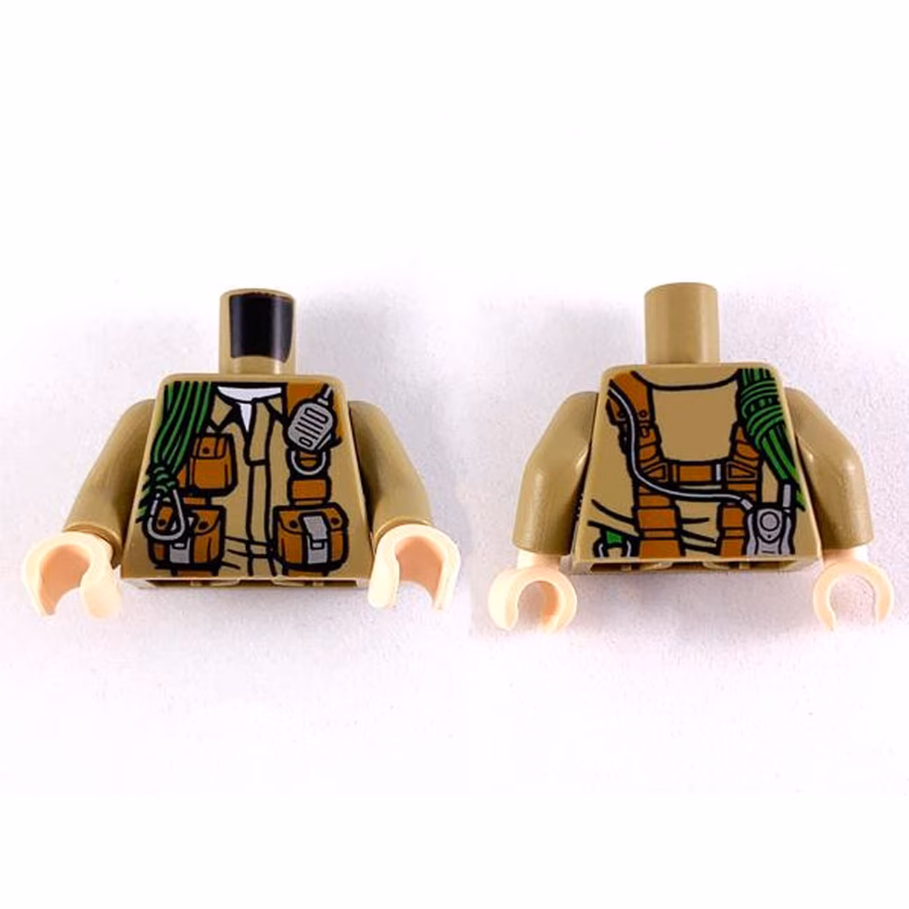 Деталь Lego 973pb3632c01 Torso Jacket with Dark Orange Pouches, Silver Radio and Bright Green Rope Pattern / Dark Tan Arms / Light Nougat Hands