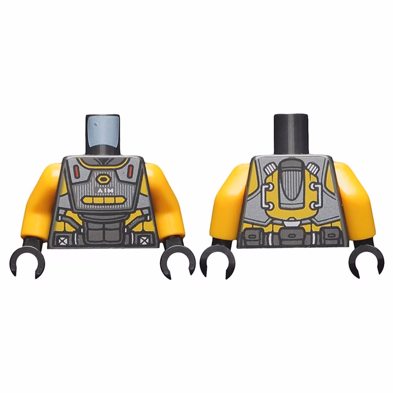 Деталь Lego 973pb3810c01 Torso Armor, Silver and Bright Light Orange Highlights and Silver ‘AIM’ Pattern / Bright Light Orange Arms / Black Hands