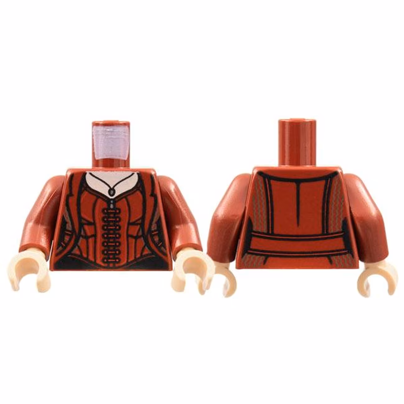 Деталь Lego 973pb4394c01 Torso Female Jacket, Light Nougat Neck, Necklace, Bodice with 7 Laces Pattern / Dark Red Arms / Light Nougat Hands
