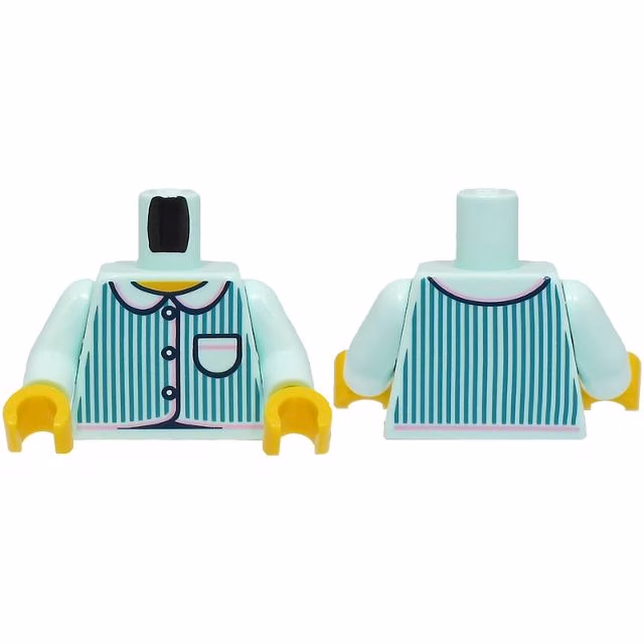Деталь Lego 973pb4881c01 Torso Pajamas 3 Buttons, Dark Turquoise Vertical Stripes, Pocket, Bright Pink Trim, Yellow Neck Pattern (BAM) / Light Aqua Arms / Yellow Hands
