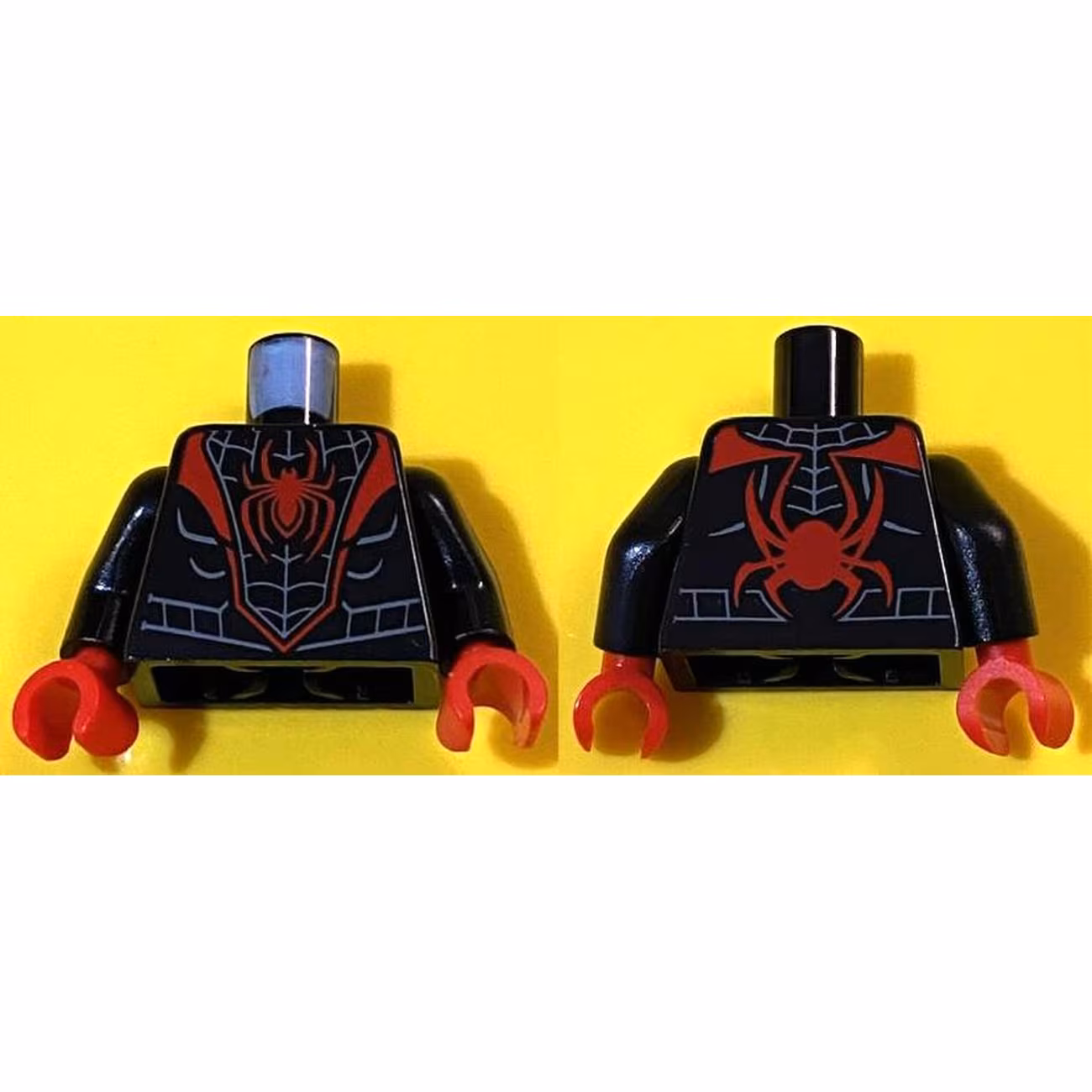 Деталь Lego 973pb5110c01 Torso Spider-Man Costume, Dark Bluish Gray Webbing, Red Spider and Lapels Pattern (Miles Morales) / Black Arms / Red Hands