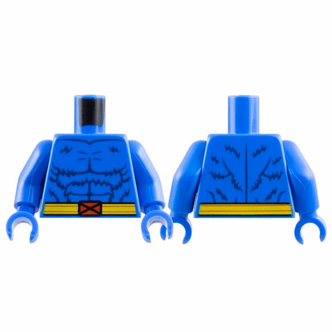 Деталь Lego 973pb5397c01 Torso Dark Blue Fur and Muscles Outline, Yellow Belt with Red X-Men Logo Buckle Pattern / Blue Arms / Blue Hands