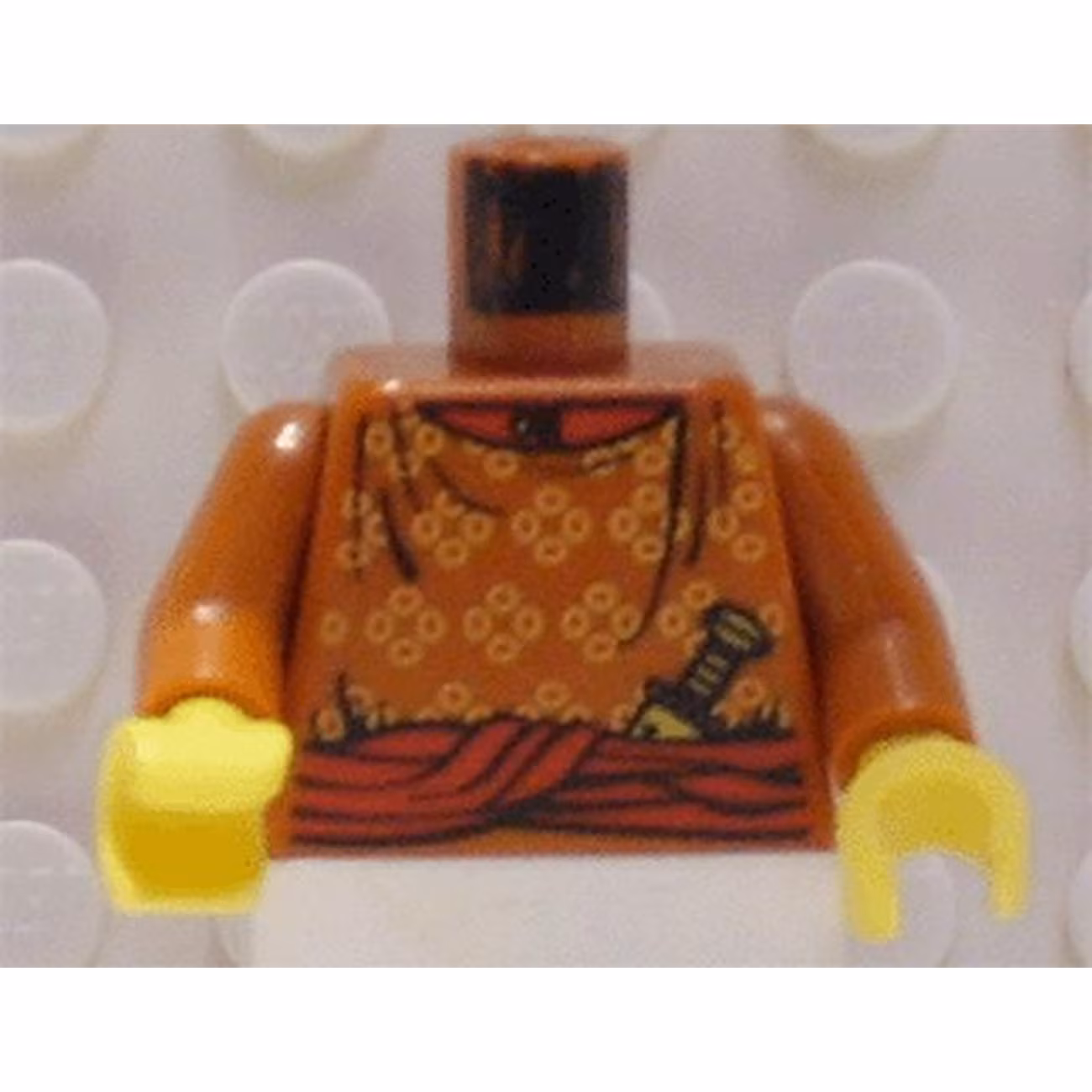Деталь Lego 973px187c01 Torso Adventurers Orient Yellow Spots, Sash, Knife, Collar Pattern / Dark Orange Arms / Yellow Hands