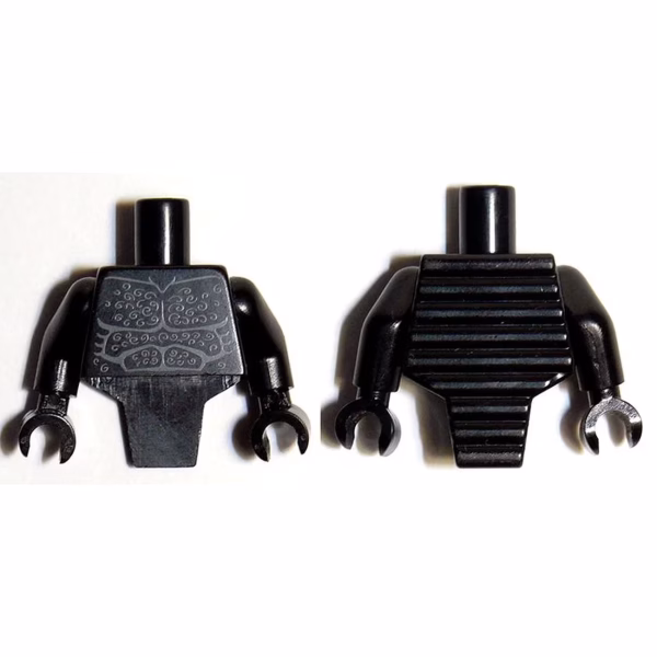 Деталь Lego 98127pb03c01 Torso, Modified Short with Ridged Armor with Bare Chest with Muscles Outline and White Chest Hair Pattern / Black Arms / Black Hands