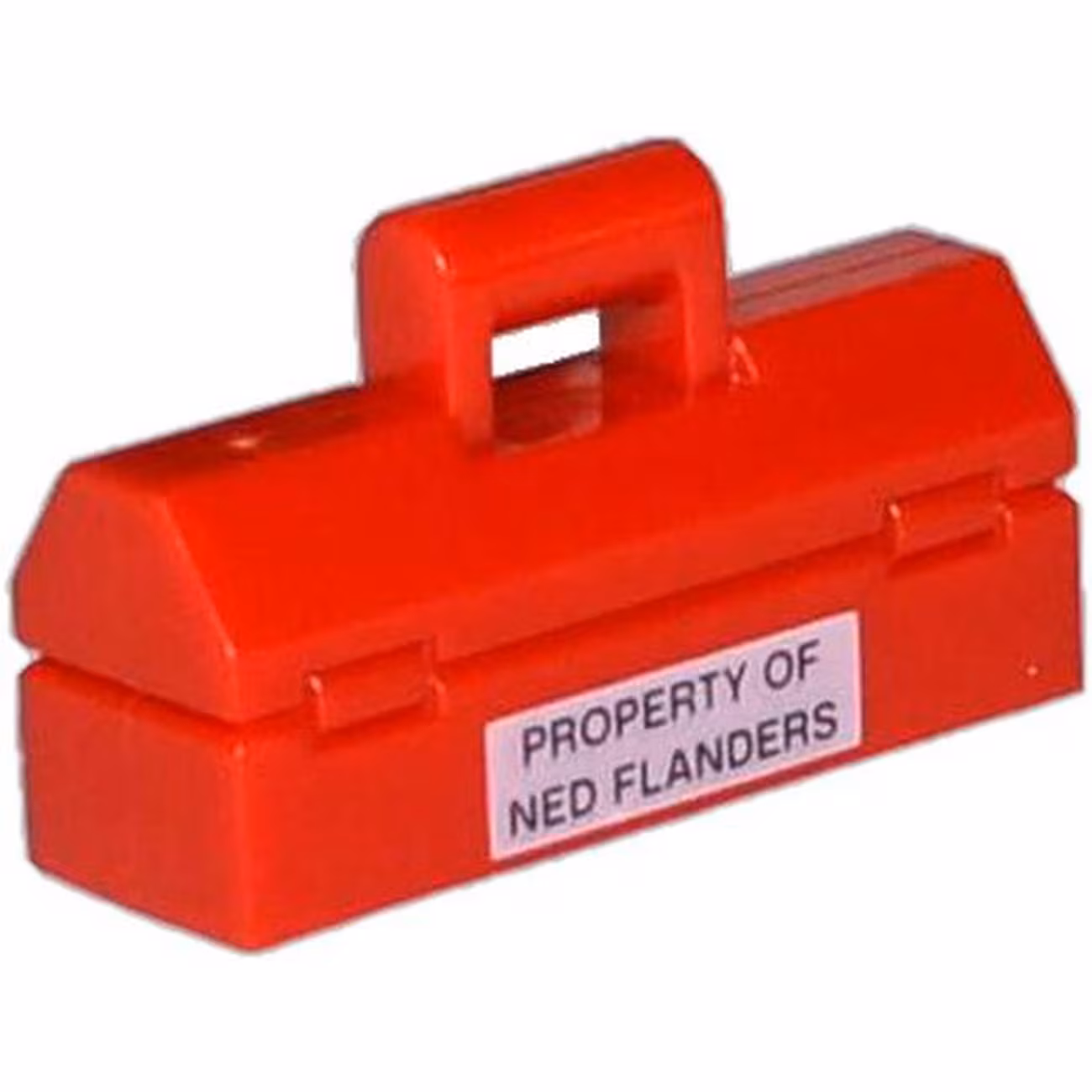 Деталь Lego 98368pb001 Minifigure, Utensil Toolbox with Black ‘PROPERTY OF NED FLANDERS’ on White Rectangle Pattern