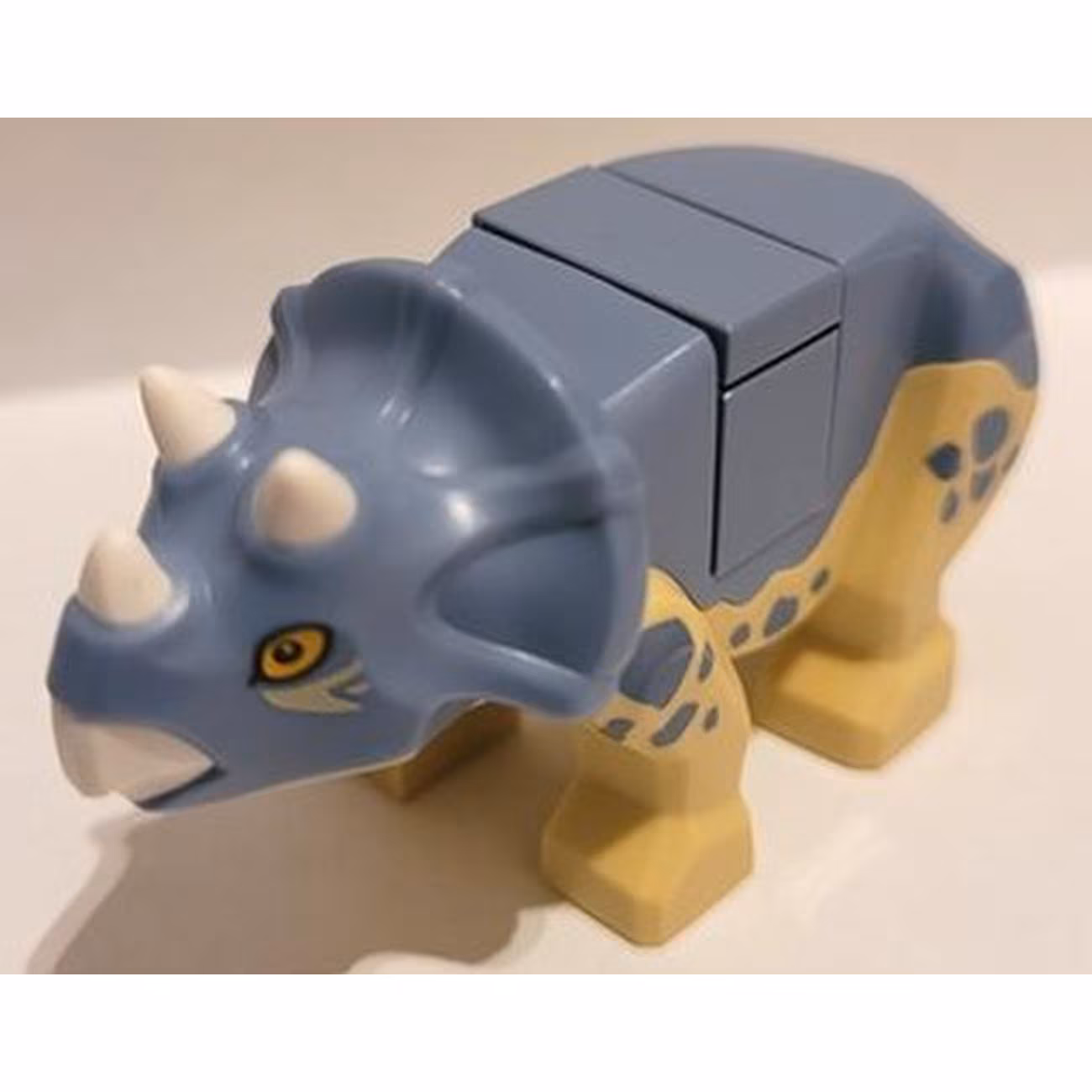 Деталь Lego tricera06 Dinosaur Triceratops Baby with Sand Blue Top with White Horns and Beak Pattern with Brick and Tile