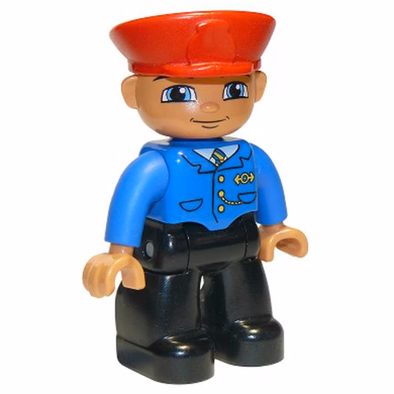 Минифигурка Lego 47394pb051a Duplo Figure Lego Ville, Male Train Conductor, Red Hat, Smile with Closed Mouth, Blue Jacket with Yellow and Blue Tie, Black Legs