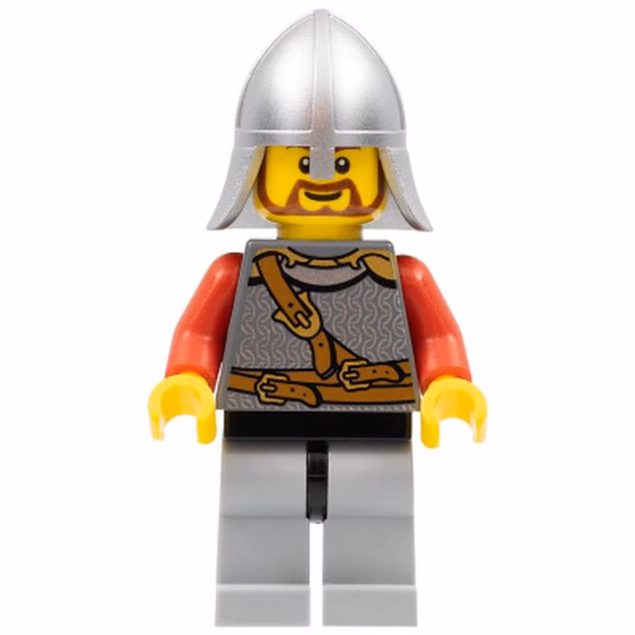 Минифигурка Lego cas450 Kingdoms – Lion Knight Scale Mail with Chest Strap and Belt, Helmet with Neck Protector, Brown Beard Rounded