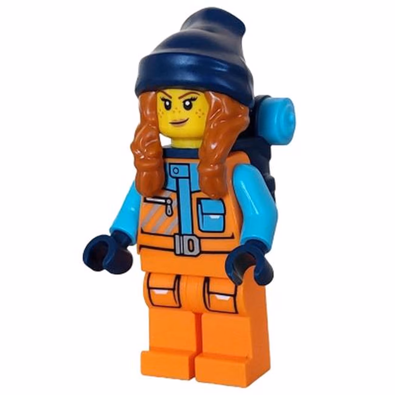 Минифигурка Lego cty1614 Arctic Explorer – Female, Orange Jacket, Dark Orange Braids with Dark Blue Beanie, Freckles, Backpack