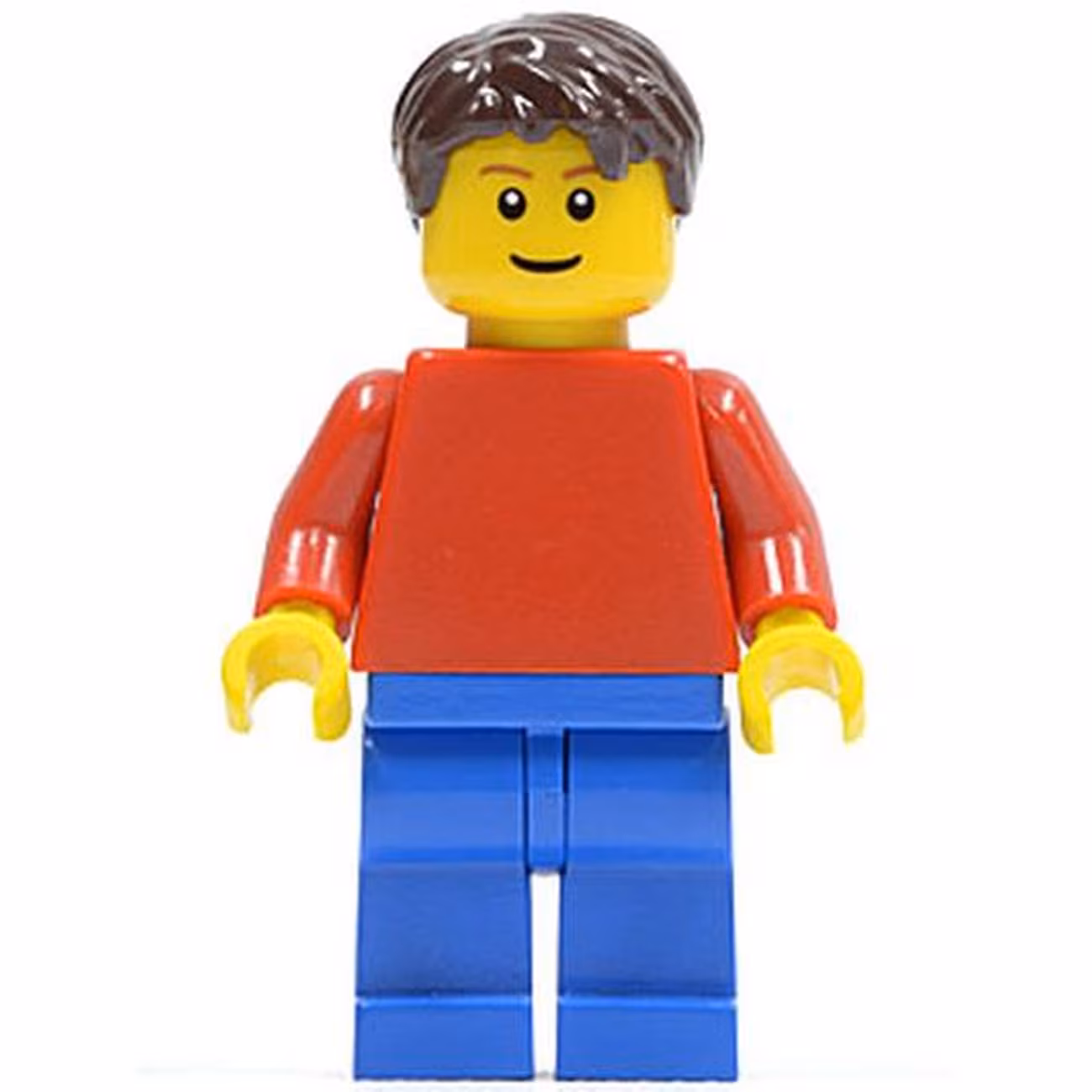 Минифигурка Lego game008 Plain Red Torso with Red Arms, Blue Legs, Dark Brown Short Tousled Hair