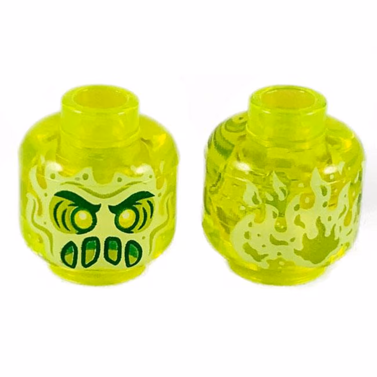 Деталь Lego 3626pb2435 Minifigure, Head Alien Ghost with Yellowish Green Face, Slime Mouth and Flames in Back Pattern